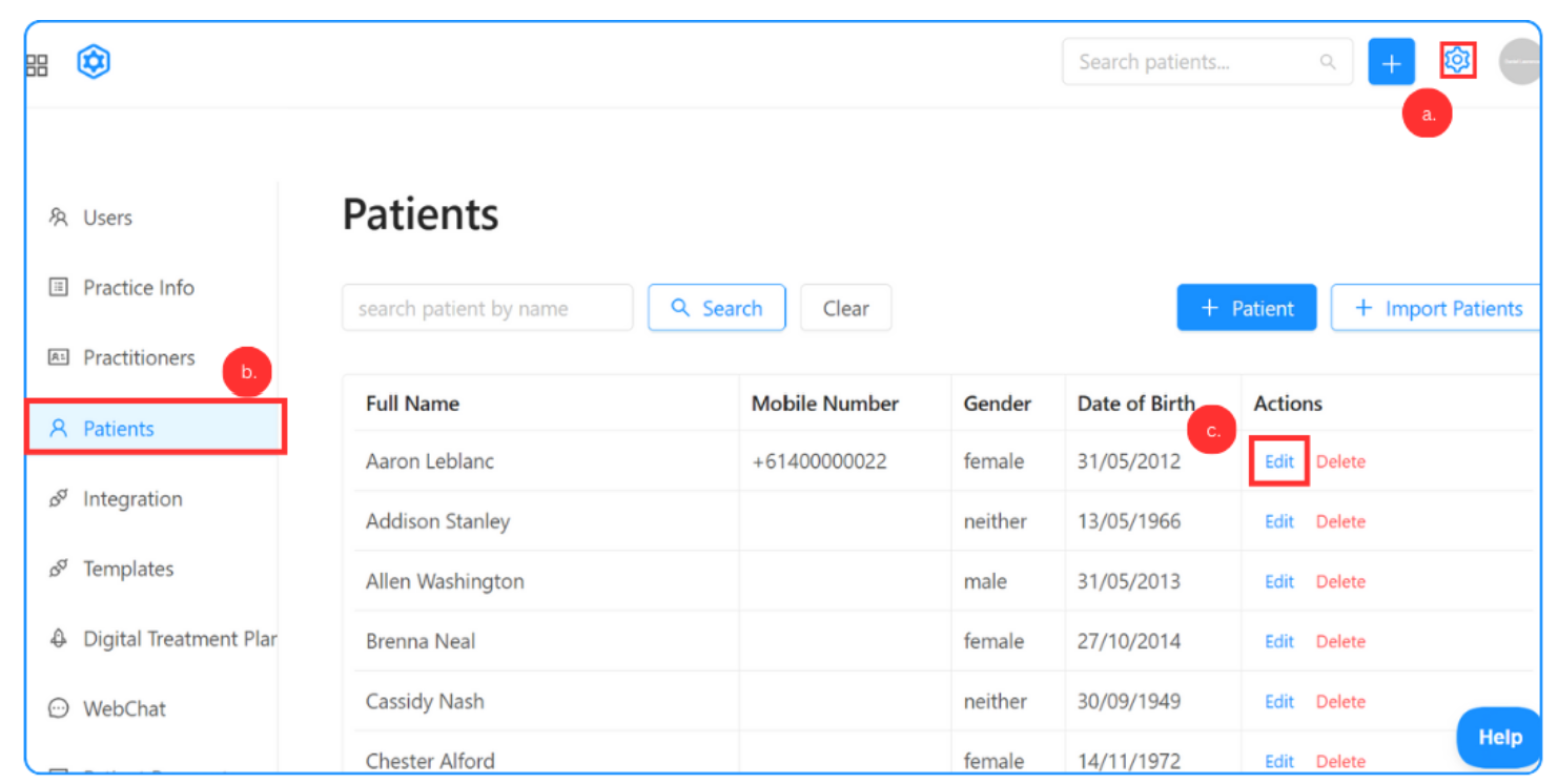 - Navigate to the Patients page in CoTreat and select a patient to edit: