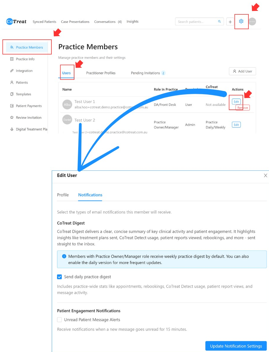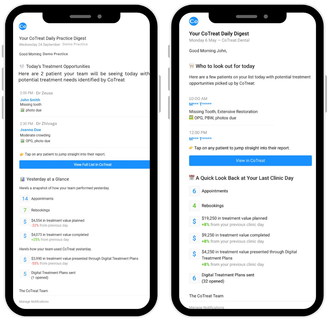 - Practice Owner/Manager - Practice Digests (Weekly by default, option to receive daily)